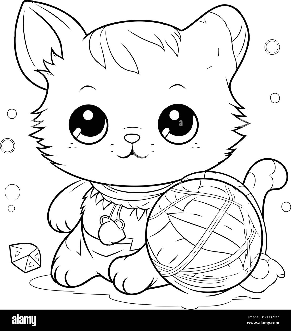 Anime Girl With Kitten Coloring Page Royalty Free Vector