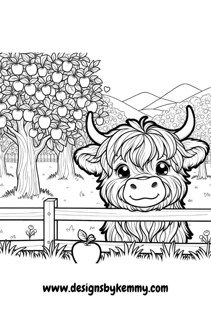 Adorable Highland Cow Coloring Pages For Relaxation And Fun Designs By Kemmy