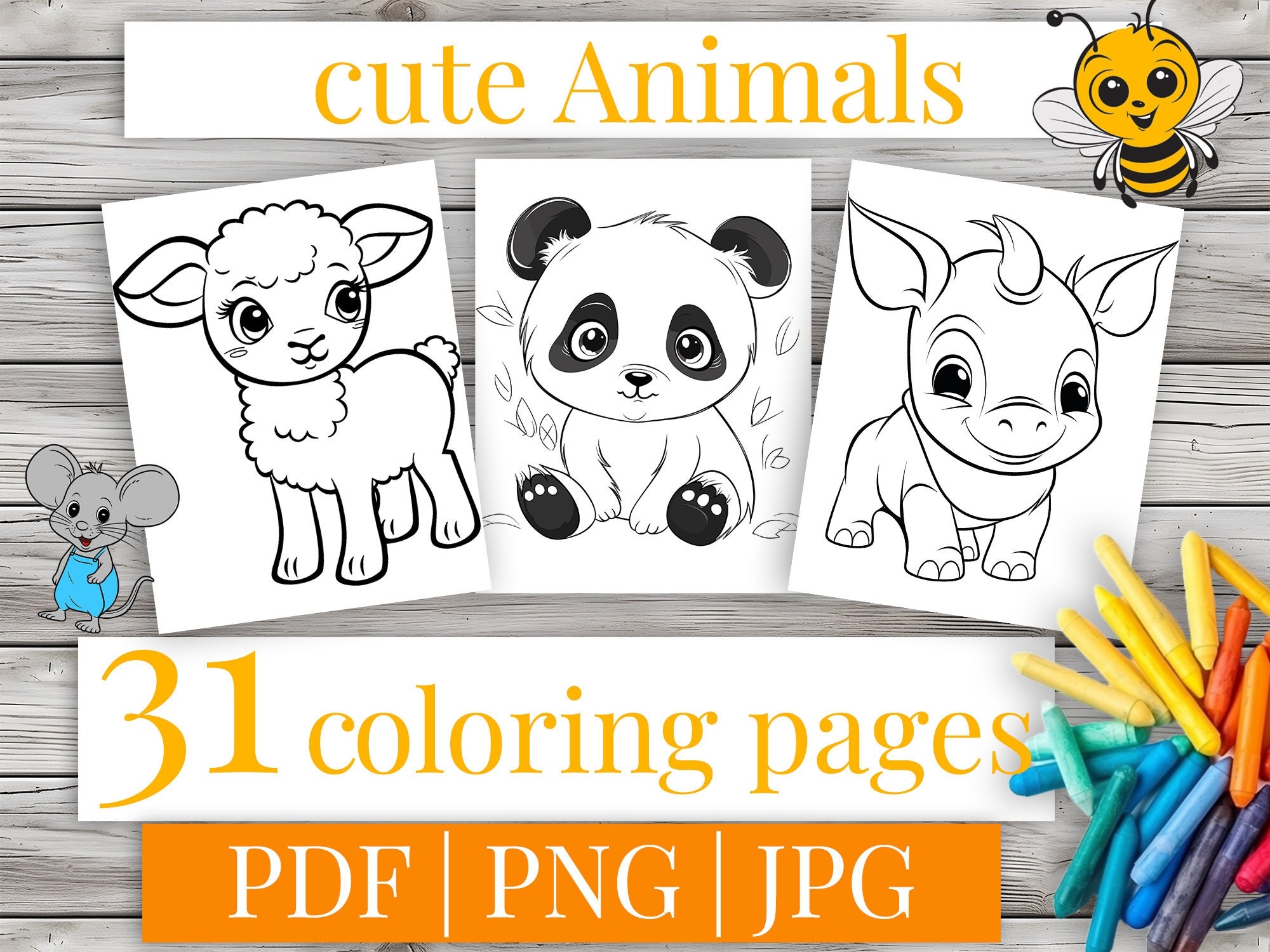Cute Baby Animal Coloring Book Page Fun Activity Children Creative Art Craft Preschool To Early Learners Girls Boys Etsy