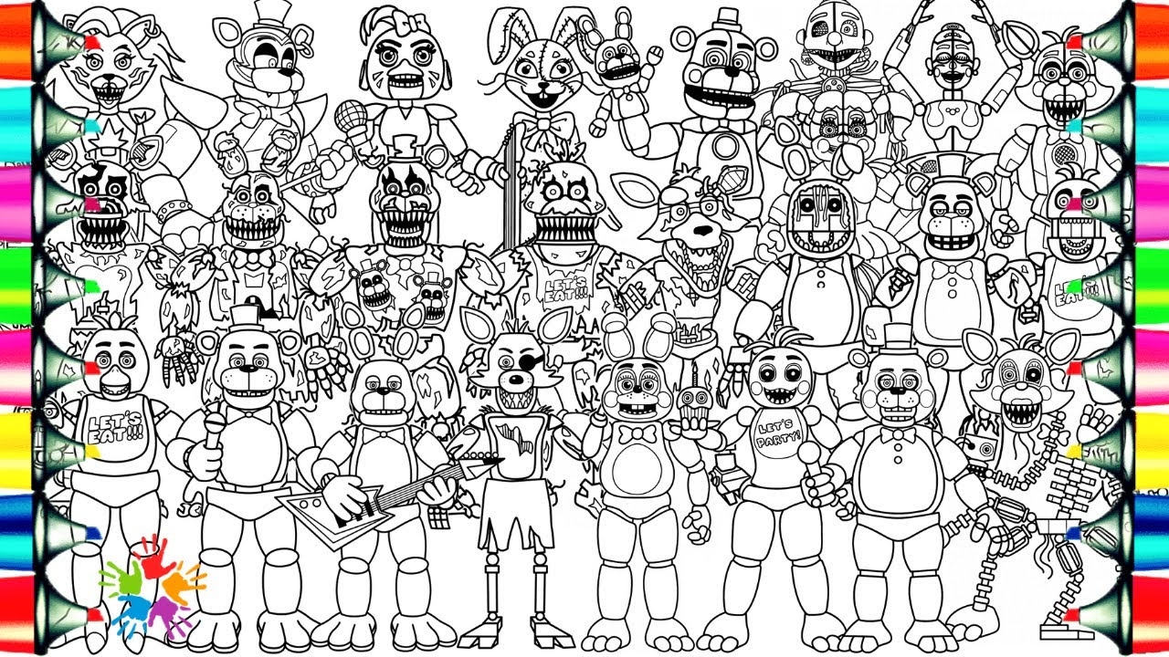 Five Nights At Freddy s Coloring Pages Mix How To Color All Main Characters From FNAF NCS Music YouTube