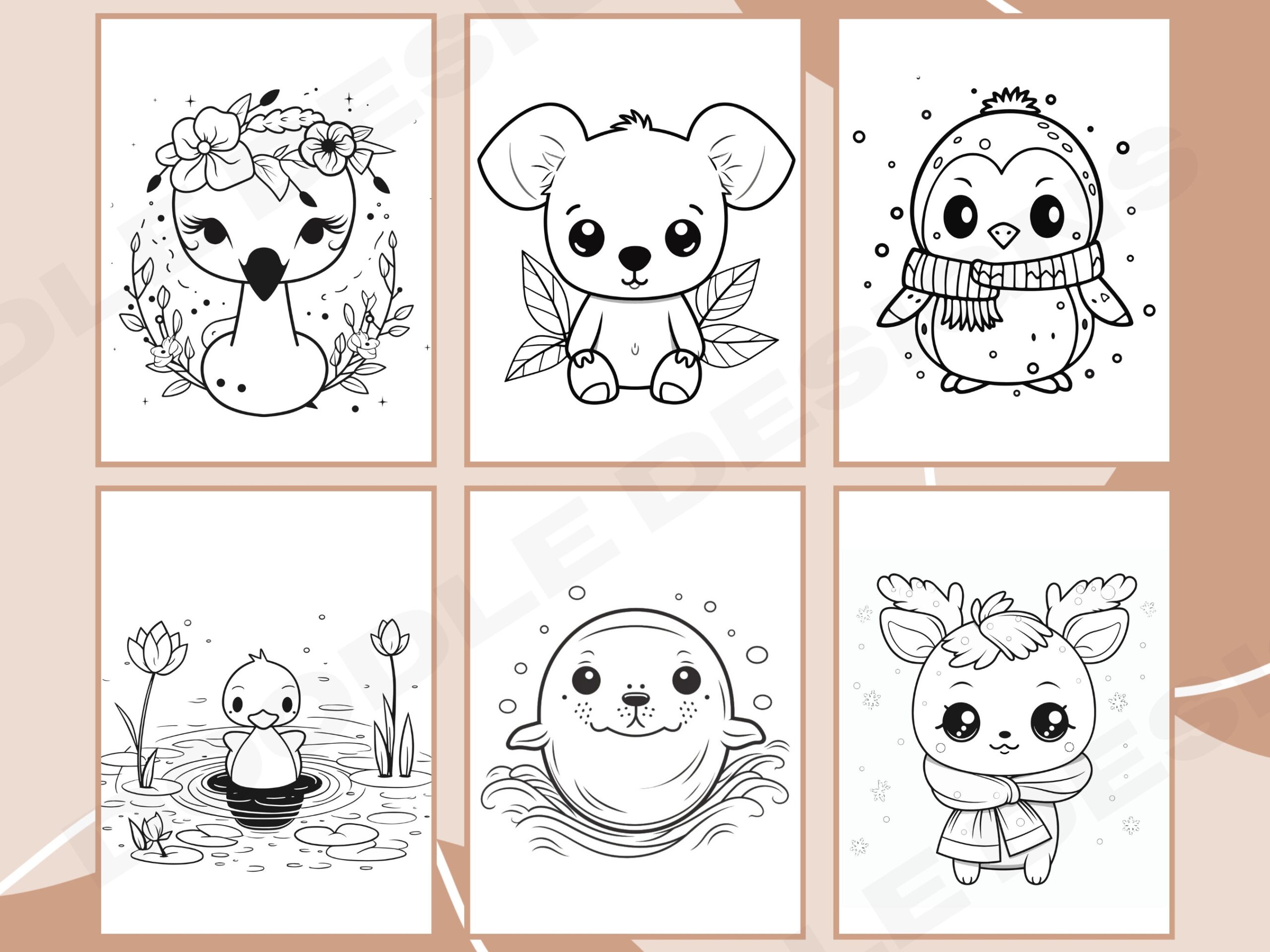 30 Kawaii Safari Animals Coloring Pages For Toddlers Kawaii Safari Animals Coloring Pages Easy And Cute Designs For Young Kids Etsy